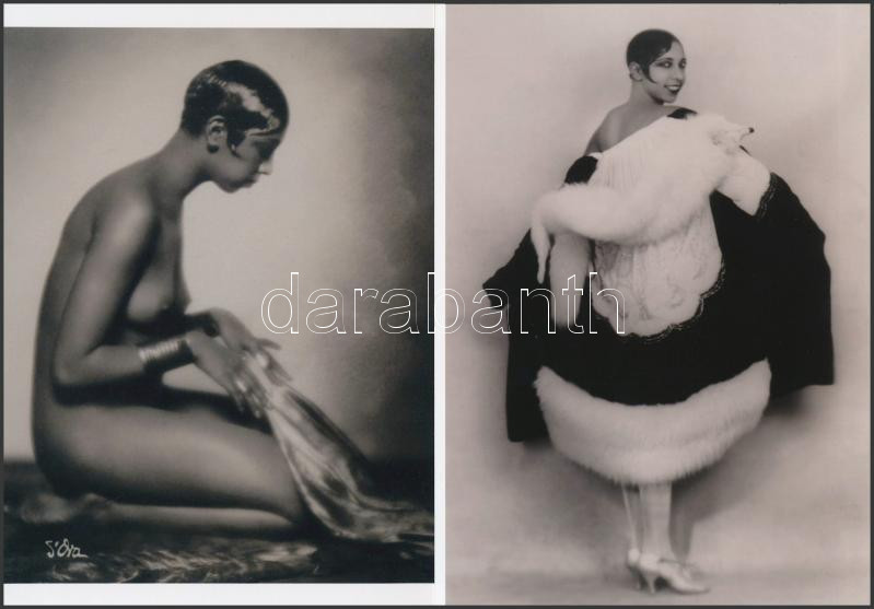 cca 1929 Josephine Baker (1906-1975) francia énekesnő, táncosnő, előadóművész, 2 db modern nagyítás, jelzés nélkül, Pánczél György (1920-?) filmtörténész hagyatékából (film- és színházifotó gyűjteményéből), 21x15 cm