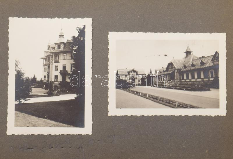 Beschreibung: cca 1930-1940 Magas-Tátráról fotókat tartalmazó fotóalbum, 36 db fotóval, 6,5×8,5 cm
