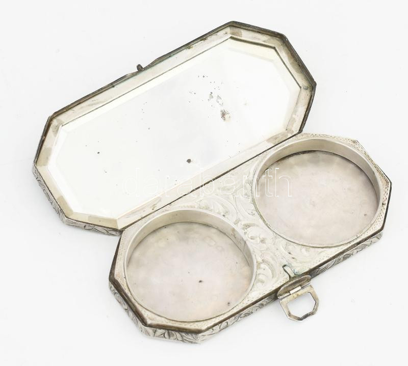 Beschreibung: Antik monogramos ezüst (Ag) pudrié, belső tükörrel, jelzett, bruttó 79g