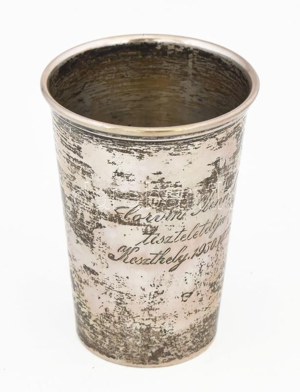 Beschreibung: Ezüst (Ag) pohár, Keszthely, 1930, jelzett, feliratos, 70g