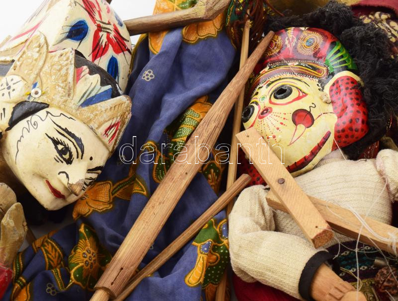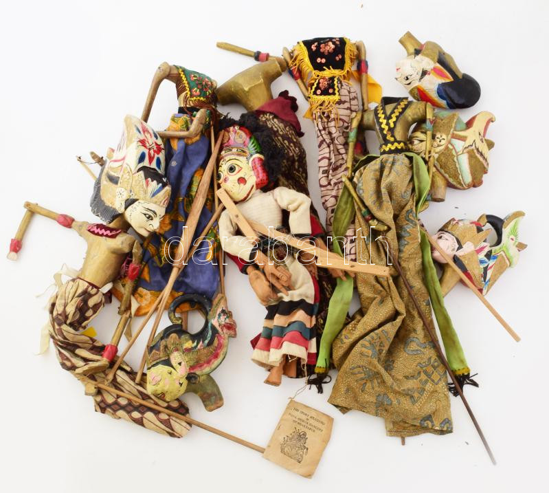 Beschreibung: 6 darab antik indonéz faragott és festett báb, vegyes állapotban