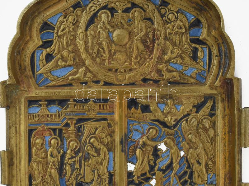 Bronz úti triptichon egy része zománc festéssel XIX. sz. 11x8 cm https://www.darabanth.com/de/476-Fernauktion/476.0/Kunst-Dokumente-andere-Sammelgebiete/Antik~500008/Bronz-uti-triptichon-egy-resze-zomanc-festessel-XIX-sz-11x8-cm~II3232480