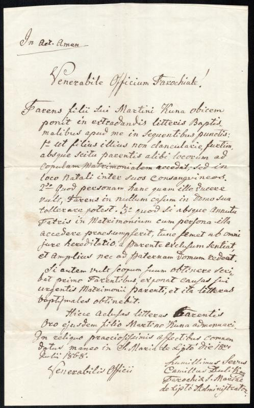 1868 Liptó városban kiadott latin nyelvű irat https://www.darabanth.com/de/476-Fernauktion/476.0/Kunst-Dokumente-andere-Sammelgebiete/Dokument~500021/1868-Lipto-varosban-kiadott-latin-nyelvu-irat~II3237984