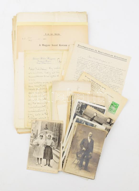 Beschreibung: cca 1910-1930 Bary Zoltán ügyész (apja a tiszaeszlári per ügyésze) hagyatékából származó levelek, iratok, képeslapok, stb.