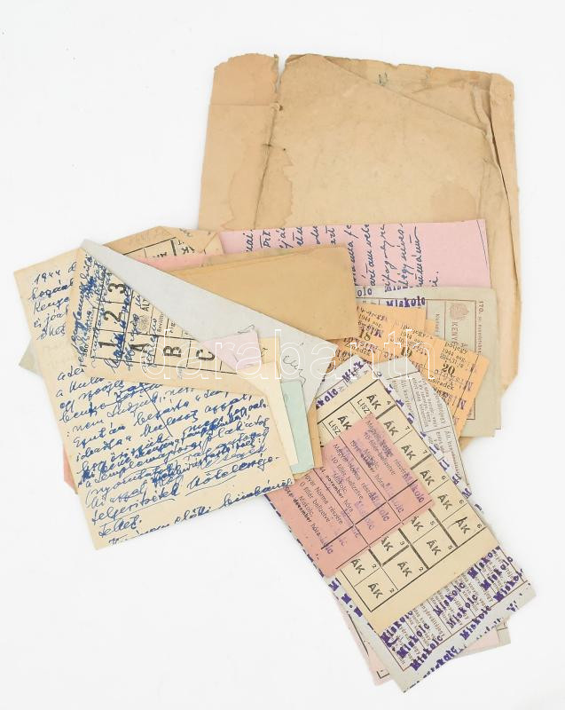 cca 1930-1940 Egy zacskónyi élelmiszerjegy és elszámolási jegy, sok mi... https://www.darabanth.com/de/476-Fernauktion/476.0/Kunst-Dokumente-andere-Sammelgebiete/Dokument~500021/cca-1930-1940-Egy-zacskonyi-elelmiszerjegy-es-elszamolasi-jegy-sok-miskolci~II3238490