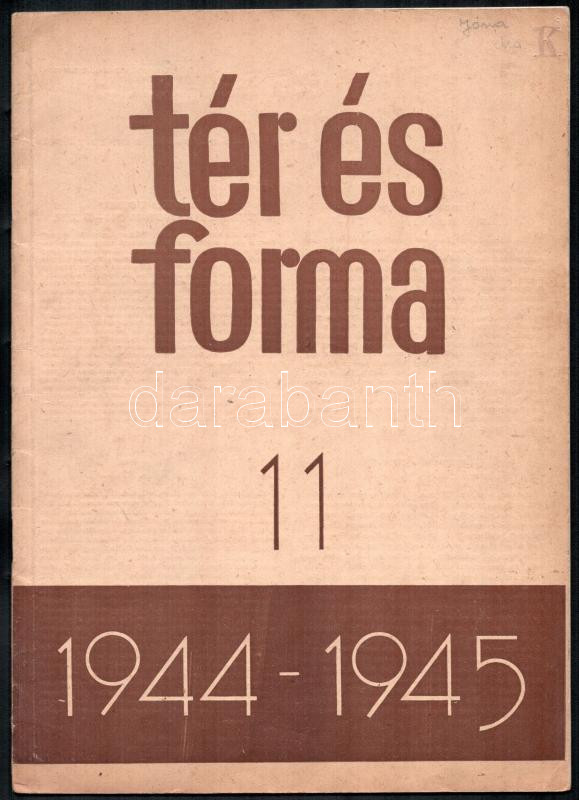 1944-1945 Tér és Forma XVIII. évfolyam 11. szám https://www.darabanth.com/de/476-Fernauktion/476.0/Kunst-Dokumente-andere-Sammelgebiete/Drucksachen~1500015/1944-1945-Ter-es-Forma-XVIII-evfolyam-11-szam~II3239403