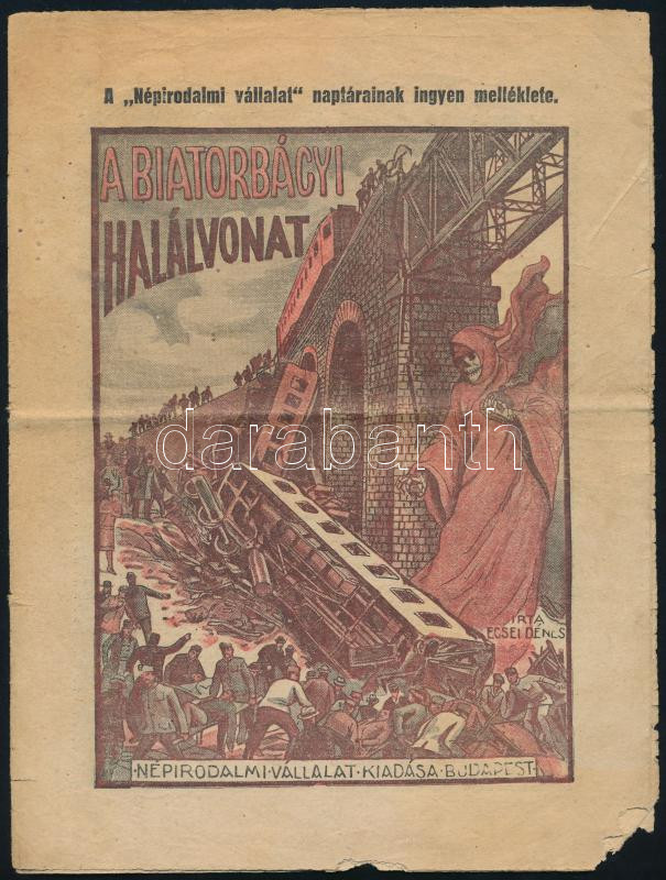Beschreibung: cca 1922 A Biatorbágyi Halálvonat c. újságmelléklet írta: Ecsei Dénes. 8 p. kis sarokhiánnyal
