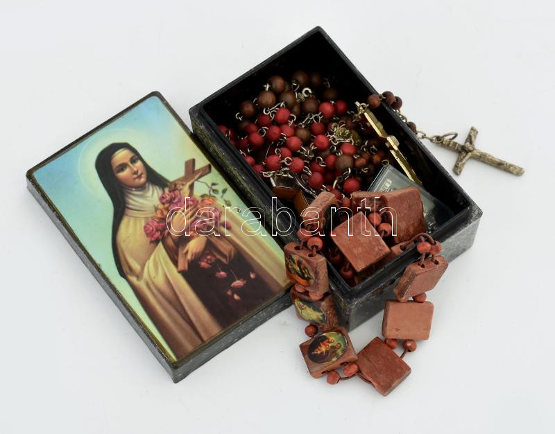 Vegyes kegytárgyak, rózsafüzér, feszület, karkötő stb https://www.darabanth.com/de/476-Fernauktion/476.0/Kunst-Dokumente-andere-Sammelgebiete/Flohmarkt~500014/Vegyes-kegytargyak-rozsafuzer-feszulet-karkoto-stb~II3237037