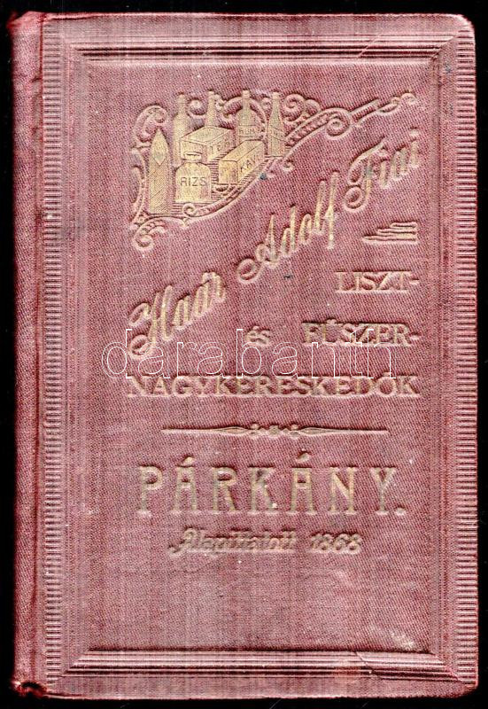 1868 Párkány, Haár Adolf Fiai Liszt és Fűszernagykereskedők jegyzetkön... https://www.darabanth.com/de/476-Fernauktion/476.0/Kunst-Dokumente-andere-Sammelgebiete/Werbungen~2000116/1868-Parkany-Haar-Adolf-Fiai-Liszt-es-Fuszernagykereskedok-jegyzetkonyv-par-bejegyzessel~II3238088