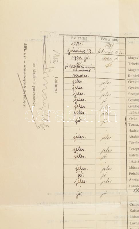 1931 M. Kir. Honvéd Ludovika Akadémia osztályozási értesÃtÅ‘je vitéz Lé... https://www.darabanth.com/de/476-Fernauktion/476.0/Kunst-Dokumente-andere-Sammelgebiete/Werbungen~2000116/1931-M-Kir-Honved-Ludovika-Akademia-osztalyozasi-ertesitoje-vitez-Levay-Gabor-akademikusrol~II3239451