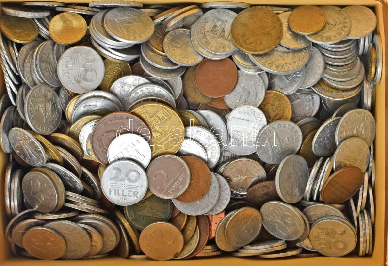 Beschreibung: Vegyes, magyar és külföldi érmetétel mintegy ~1kg súlyban, T:vegyes Mixed, Hungarian and foreign coin lot (~1kg) C:mixed
