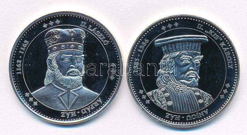 DN "Magyarország Keresztény Királyai / II. László 1162-1163" jelzetlen Ag emlékérem kapszulában (20g/0.333/39mm) + "Magyarország Keresztény Királyai / II. Kis Károly 1385-1386" jelzetlen Ag emlékérem kapszulában (20g/0.333/39mm) T:PP