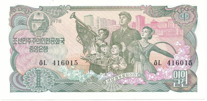 Észak-Korea 1983. (1978) 1W hátoldalán zöld pecséttel (deviza igazolás) T:AU