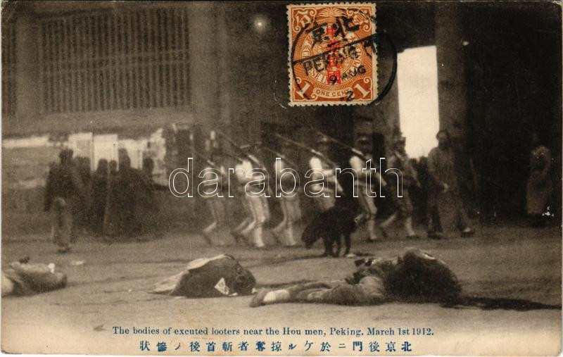 Beijing, Peking; The bodies of executed looters near the Hou men, Marc... https://www.darabanth.com/de/477-Fernauktion/477.0/Ansichtskarten/China~1500084/Beijing-Peking-The-bodies-of-executed-looters-near-the-Hou-men-March-1st-1912-fl~II3251876