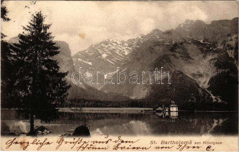 1904 St. Bartholomä am Königssee (fl) https://www.darabanth.com/de/477-Fernauktion/477.0/Ansichtskarten/Deutschland~1500094/1904-St-Bartholoma-am-Konigssee-fl~II3250422