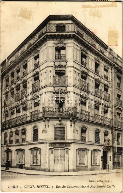 1911 Paris, Cecil Hotel. Rue du Conservatoire et Rue Sainte-Cécile (gl... https://www.darabanth.com/de/477-Fernauktion/477.0/Ansichtskarten/Frankreich~1500076/1911-Paris-Cecil-Hotel-Rue-du-Conservatoire-et-Rue-Sainte-Cecile-glue-marks~II2580958