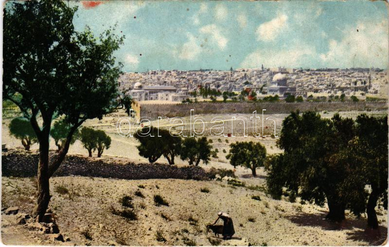Jerusalem, from Olivet (Mount of Olives) (EK) https://www.darabanth.com/de/477-Fernauktion/477.0/Ansichtskarten/Israel~1500082/Jerusalem-from-Olivet-Mount-of-Olives-EK~II3246166