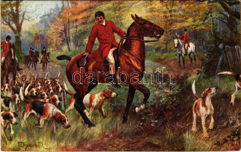 Beschreibung: Hunting art postcard with dogs and horses. Raphael Tuck & Sons' "Oilette" Connoisseur "The Hunt Day" Postcard 2781. s: N. Drummoni