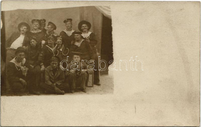 1907 SMS Sankt Georg osztrák-magyar páncélos cirkáló matrózai Amerikában, csoportkép egy indiánnal / K.u.K. Kriegsmarine Matrosen / Austro-Hungarian Navy mariners of SMS Sankt Georg armored cruiser in America (USA), group photo with a native Indian