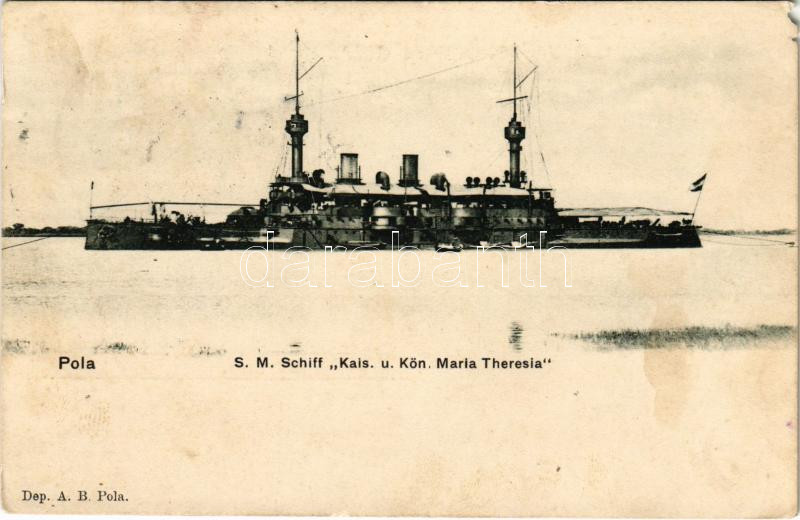 1908 Pola, SMS Kaiserin und Königin Maria Theresia osztrák-magyar hadi... https://www.darabanth.com/de/477-Fernauktion/477.0/Ansichtskarten/Kriegsschiffe~1500026/1908-Pola-SMS-Kaiserin-und-Konigin-Maria-Theresia-osztrak-magyar-haditengereszet-pancelos-cirk~II3134069