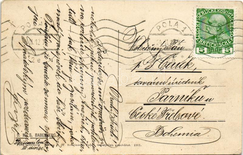 1912 SMS BABENBERG osztrák-magyar haditengerészet Habsburg-osztályú pr... https://www.darabanth.com/de/477-Fernauktion/477.0/Ansichtskarten/Kriegsschiffe~1500026/1912-SMS-BABENBERG-osztrak-magyar-haditengereszet-Habsburg-osztalyu-pre-dreadnought-csatahajo-~II3140116