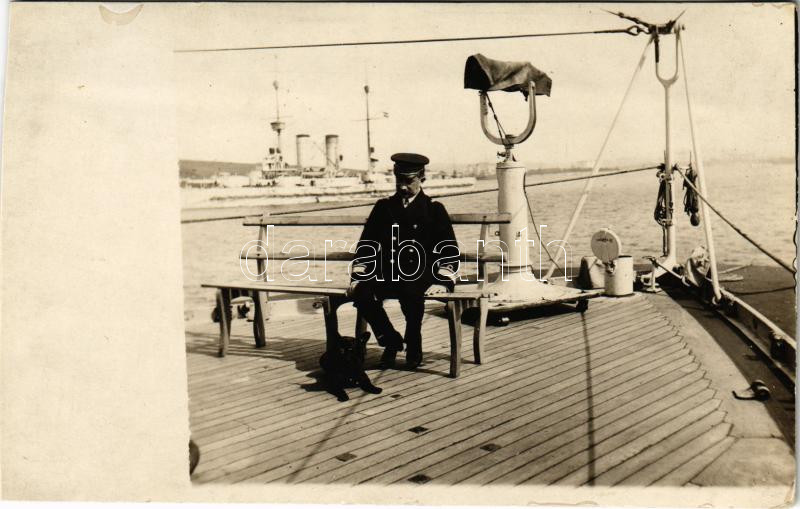 Beschreibung: 1914 SMS HABSBURG az Osztrák-Magyar Haditengerészet Habsburg-osztályú pre-dreadnought csatahajó korvettkapitánya / K.u.K. Kriegsmarine Korvettenkapitän / Austro-Hungarian Navy battleship's captain. photo