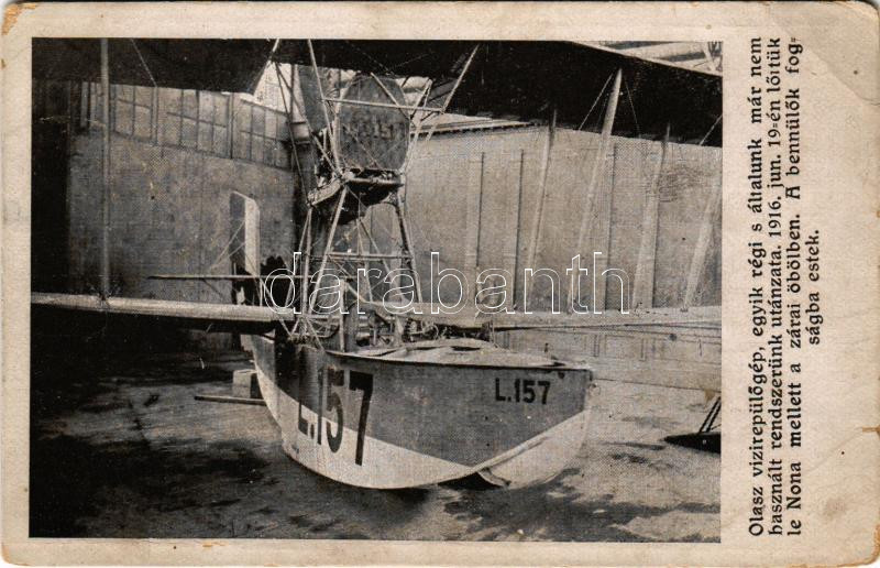 1917 Olasz vízirepülőgép (L. 157), egyik régi s általunk már nem használt rendszerünk utánzata. 1916. június 19-én lőttük le Nona mellett a zárai öbölben. A bennülők fogságba estek. Budapest, Hadirepülő Kiállítás 1917 / WWI Austro-Hungarian Navy, K.u.K. Kriegsmarine, shot down Italian naval seaplane + So. Stpl. (EB)