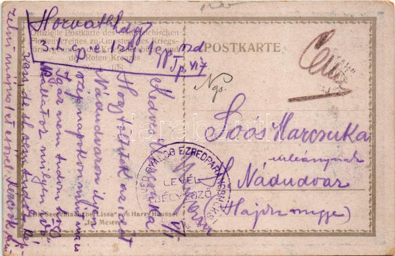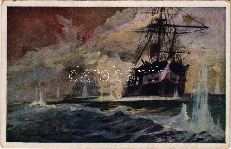 Die Seeschlacht bei Lissa. Im Melee. K.u.K. Kriegsmarine. Offizielle Karte für Rotes Kreuz. Kriegsfürsorgeamt Kriegshilfsbüro Nr. F. 108. - K.u.k. Kriegsmarine / WWI Austro-Hungarian Navy, Battle of Lissa s: Harry Heusser