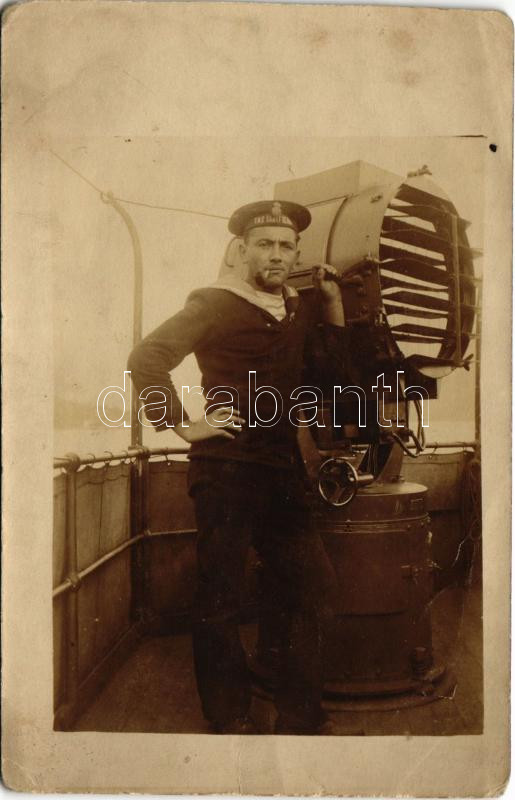 SMS Sankt Georg osztrák-magyar páncélos cirkáló matróza pipázás közben fedélzeti reflektor mellett / K.u.k. Kriegsmarine Matrose / Austro-Hungarian Navy mariner smoking a pipe next to a searchlight. photo (EK)