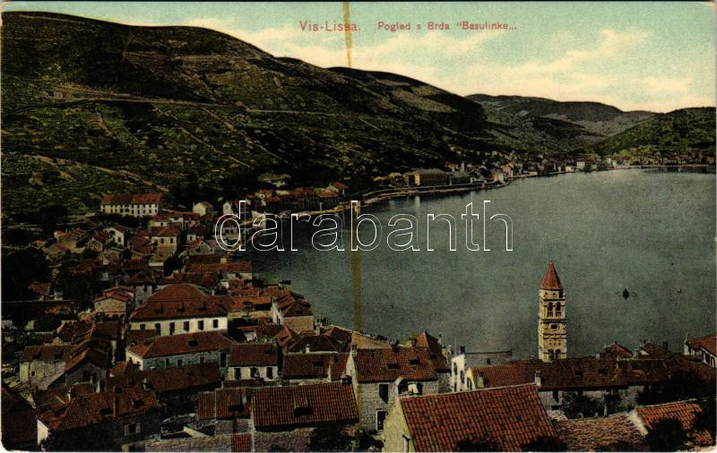 Vis, Lissa; Pogled s Brda Basulinke (fl) https://www.darabanth.com/de/477-Fernauktion/477.0/Ansichtskarten/Kroatien~1500012/Vis-Lissa-Pogled-s-Brda-Basulinke-fl~II3246984