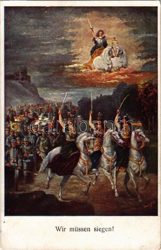 Beschreibung: Wir müssen siegen! / Első világháborús osztrák-magyar katonai propaganda / WWI K.u.k. military propaganda. Gustav Braun 157-1916. (fl)