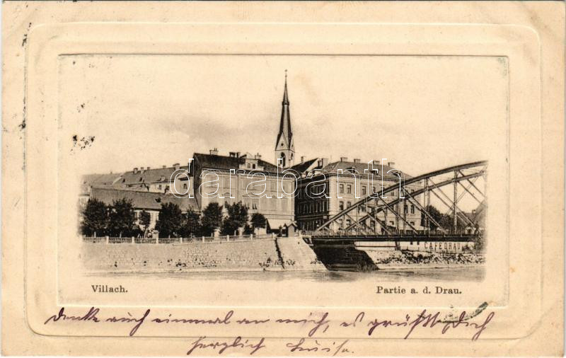 1901 Villach (Kärnten), Partie a. d. Drau / riverside, bridge (EK) https://www.darabanth.com/de/477-Fernauktion/477.0/Ansichtskarten/Osterreich~1500055/1901-Villach-Karnten-Partie-a-d-Drau-riverside-bridge-EK~II3247630