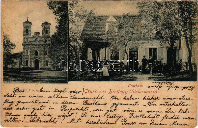 1902 Breitegg (Steiermark), Gasthaus, Kirche / restaurant, church (EK) https://www.darabanth.com/de/477-Fernauktion/477.0/Ansichtskarten/Osterreich~1500055/1902-Breitegg-Steiermark-Gasthaus-Kirche-restaurant-church-EK~II3244437