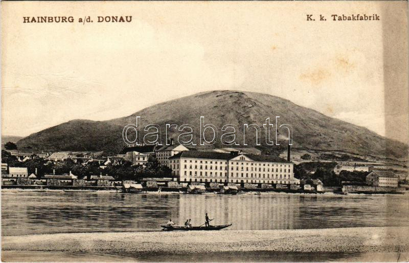 Hainburg an der Donau, K. k. Tabakfabrik / tobacco factory (Rb) https://www.darabanth.com/de/477-Fernauktion/477.0/Ansichtskarten/Osterreich~1500055/Hainburg-an-der-Donau-K-k-Tabakfabrik-tobacco-factory-Rb~II3248249