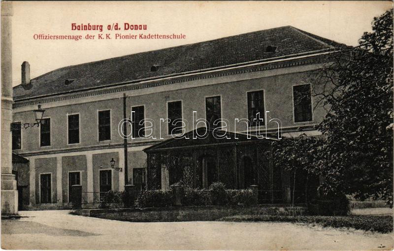 Hainburg an der Donau, Offiziersmenage der k.k. Pionier Kadettenschule... https://www.darabanth.com/de/477-Fernauktion/477.0/Ansichtskarten/Osterreich~1500055/Hainburg-an-der-Donau-Offiziersmenage-der-kk-Pionier-Kadettenschule-KuK-military-pioneer-cad~II3248247