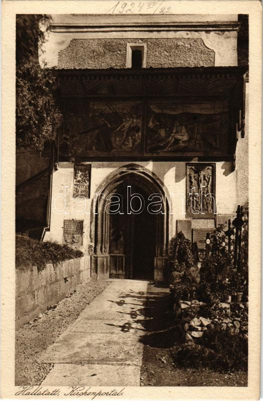 Hallstatt, Kirchenportal / church gate https://www.darabanth.com/de/477-Fernauktion/477.0/Ansichtskarten/Osterreich~1500055/Hallstatt-Kirchenportal-church-gate~II3246500
