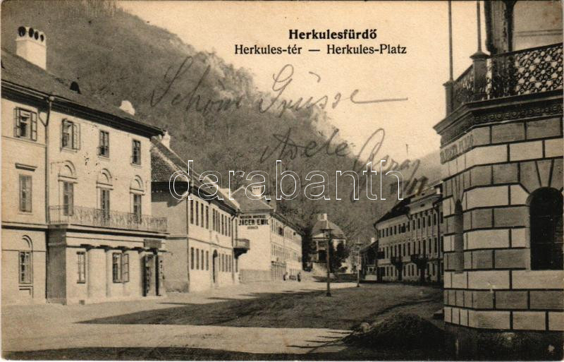 1905 Herkulesfürdő, Baile Herculane; Herkules tér, Jäger Emil kiadása ... https://www.darabanth.com/de/477-Fernauktion/477.0/Ansichtskarten/Siebenburgen~1500006/1905-Herkulesfurdo-Baile-Herculane-Herkules-ter-Jager-Emil-kiadasa-square-shop-EK~II3244301