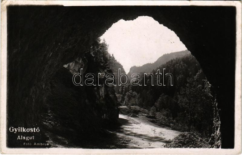 Beschreibung: 1941 Gyilkos-tó, Ghilcos, Lacul Rosu (Gyergyói-havasok, Muntii Giurgeu); Alagút a Békás-szoroshoz / tunnel. Foto Ambrus (kis szakadás / small tear)