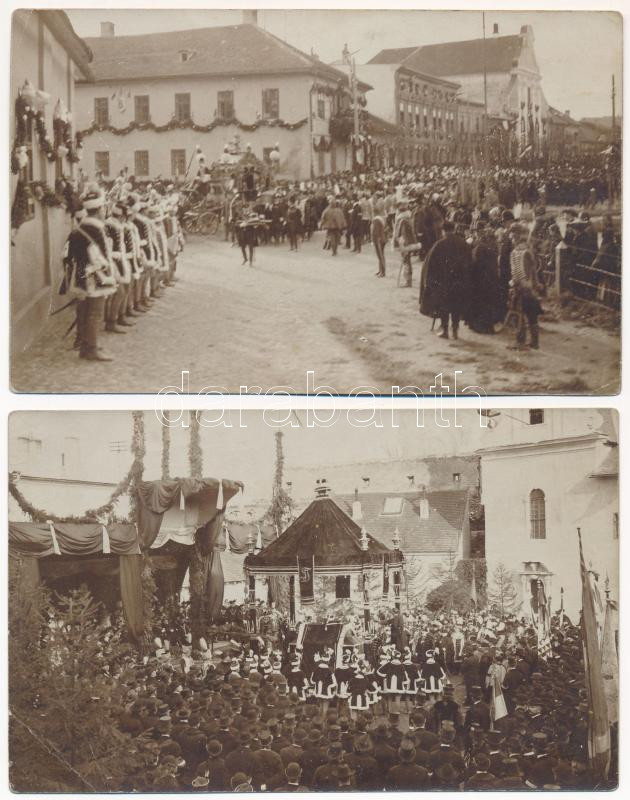1906 Késmárk, Kezmarok; Thököly Imre újratemetése a várban, Dr. Pronay Dezső tartja a halotti beszédet - 2 db eredet fotó képeslap / reburial ceremony of Emeric Thököly - 2 original photo postcards