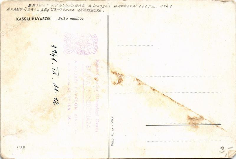 Kassa, Kassai-havasok, Kosice; Erika menház / tourist rest house (EB) https://www.darabanth.com/de/477-Fernauktion/477.0/Ansichtskarten/Slowakei~1500007/Kassa-Kassai-havasok-Kosice-Erika-menhaz-tourist-rest-house-EB~II3248720