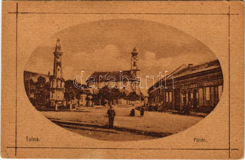 1922 Tolna, Fő tér, templom, Szily János üzlete (EK) https://www.darabanth.com/de/477-Fernauktion/477.0/Ansichtskarten/Ungarn~1500005/1922-Tolna-Fo-ter-templom-Szily-Janos-uzlete-EK~II3245795