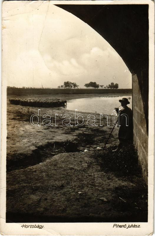 1929 Hortobágy, Pihenő juhász, magyar folklór (fa) https://www.darabanth.com/de/477-Fernauktion/477.0/Ansichtskarten/Ungarn~1500005/1929-Hortobagy-Piheno-juhasz-magyar-folklor-fa~II3120053