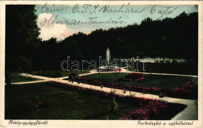 1931 Hévíz, Park részlet a szökőkúttal https://www.darabanth.com/de/477-Fernauktion/477.0/Ansichtskarten/Ungarn~1500005/1931-Heviz-Park-reszlet-a-szokokuttal~II3244954