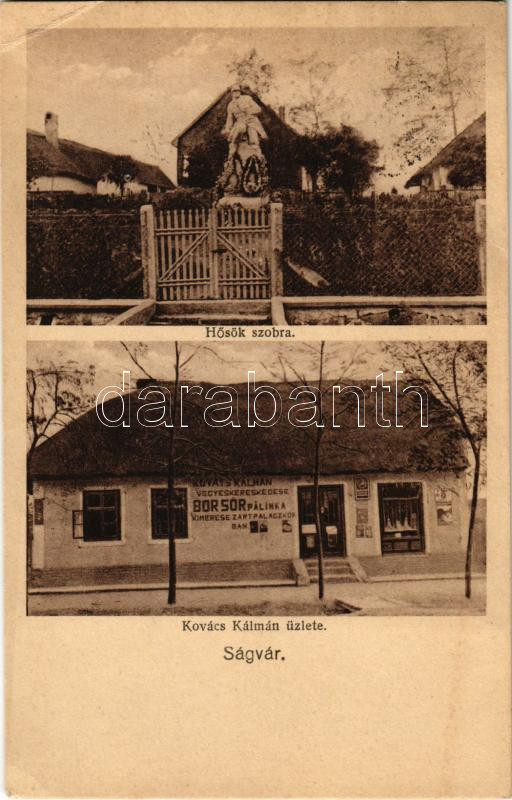 1935 Ságvár, Hősök szobra, emlékmű, Kovács Kálmán üzlete és saját kiad... https://www.darabanth.com/de/477-Fernauktion/477.0/Ansichtskarten/Ungarn~1500005/1935-Sagvar-Hosok-szobra-emlekmu-Kovacs-Kalman-uzlete-es-sajat-kiadasa-EB~II3081611