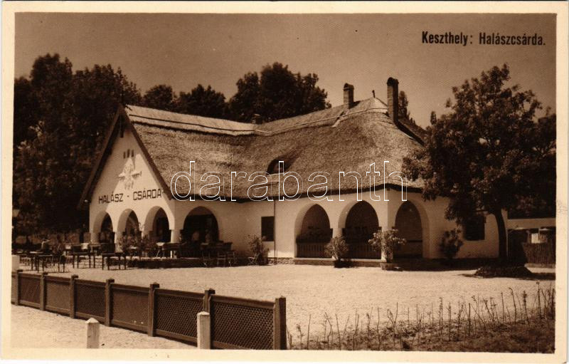 Keszthely, Halászcsárda. photo https://www.darabanth.com/de/477-Fernauktion/477.0/Ansichtskarten/Ungarn~1500005/Keszthely-Halaszcsarda-photo~II3244803