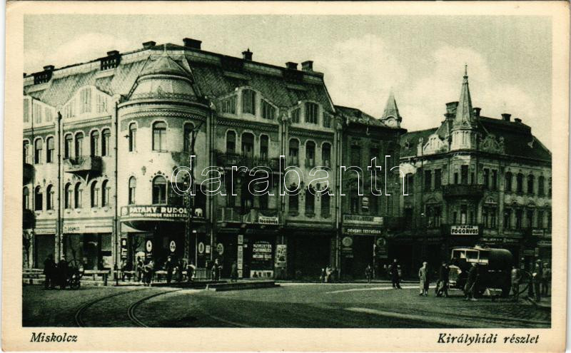 Miskolc, Királyhídi részlet, Pataky Rudolf, Dévényi Testvérek üzlete, ... https://www.darabanth.com/de/477-Fernauktion/477.0/Ansichtskarten/Ungarn~1500005/Miskolc-Kiralyhidi-reszlet-Pataky-Rudolf-Devenyi-Testverek-uzlete-Vajda-fogorvos-Moricz~II3244928