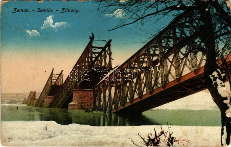 Zimony, Semlin, Zemun; felrobbantott vasúti híd télen / WWI blown up r... https://www.darabanth.com/de/477-Fernauktion/477.0/Ansichtskarten/Vojvodina~1500011/Zimony-Semlin-Zemun-felrobbantott-vasuti-hid-telen-WWI-blown-up-railway-bridge-in-winter-EB~II3243267