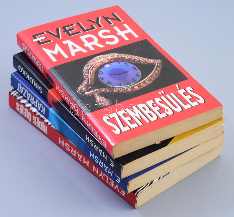 5 db - Marsch, Evelyn: Sirokkó, Káprázat, Hideg ölelés, Szembesülés. D... https://www.darabanth.com/de/477-Fernauktion/477.0/Bucher/Bucher-Andere-kuriositaten~2000020/5-db-Marsch-Evelyn-Sirokko-Kaprazat-Hideg-oleles-Szembesules-DEDIKALT-Kiadoi-papi~II3253951