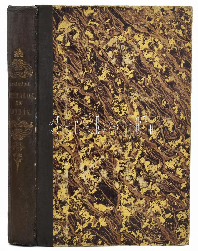 Erdélyi János: Népdalok és mondák. Magyar népköltési gyűjtemény II. köt. Szerk. és kiadja: - -. Pest, 1847, Magyar Mihály (Beimel József-ny.), VIII+478+36 p. Korabeli aranyozott gerincű félvászon-kötés, festett - mintás lapélekkel, kopott borítóval, a címlapon a "Izráelita Magyar Egylet" bélyegzésével.