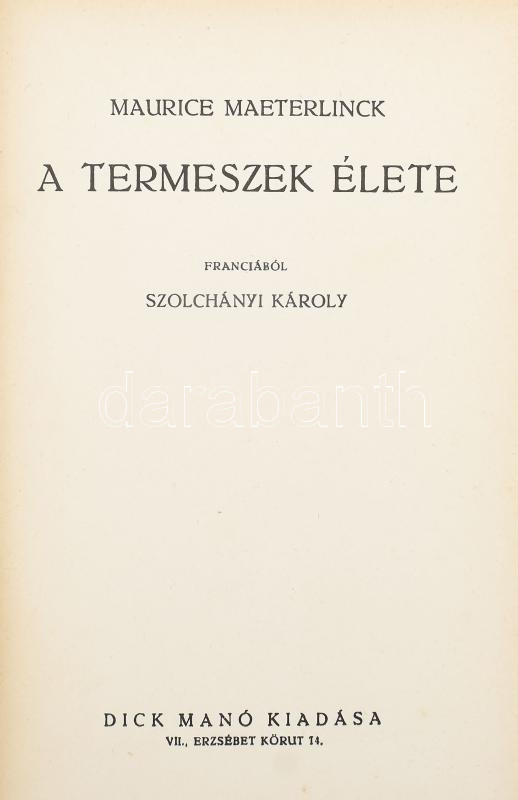 Maeterlinck, Maurice: A termeszek élete. Ford.: Szlochányi Károly. Bp.... https://www.darabanth.com/de/477-Fernauktion/477.0/Bucher/Bucher-Andere-kuriositaten~2000020/Maeterlinck-Maurice-A-termeszek-elete-Ford-Szlochanyi-Karoly-Bp-1927-Dick-Mano-175plus~II3253751